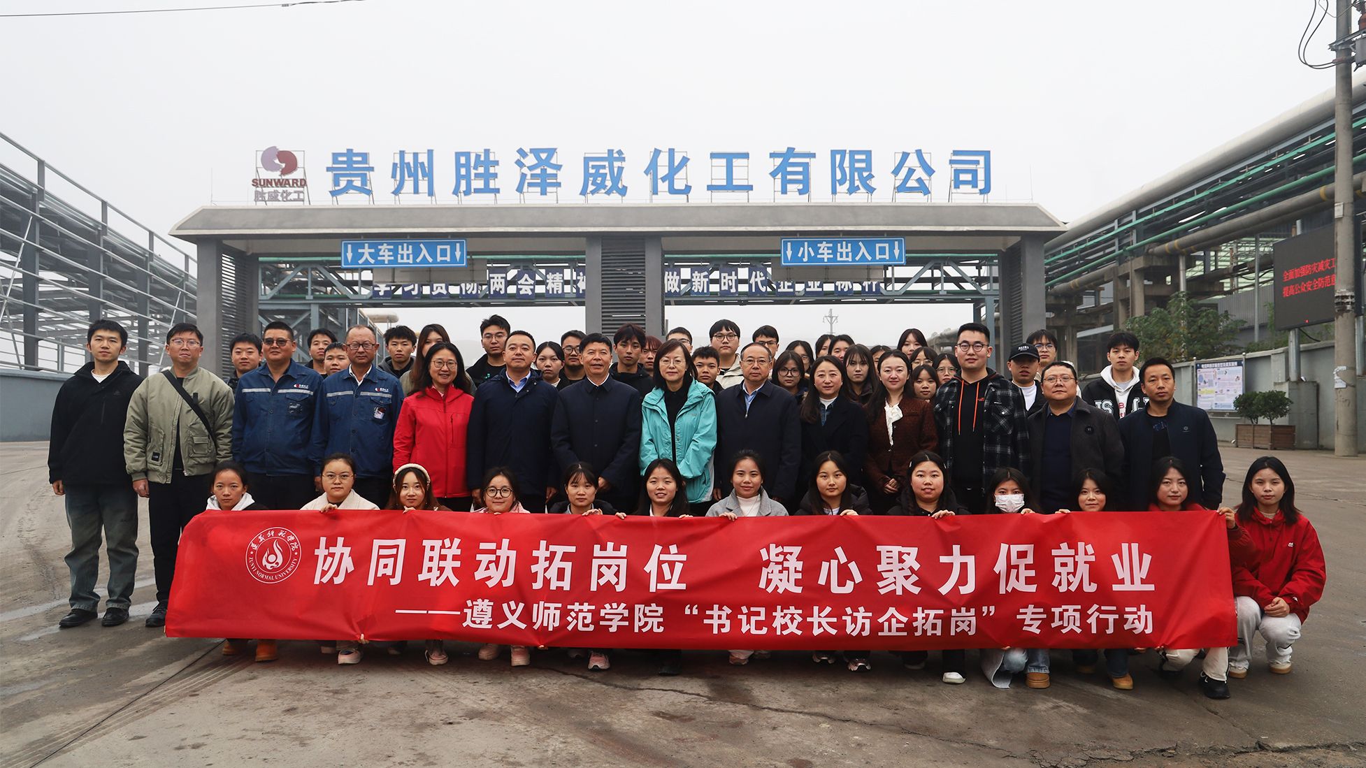 本网讯(文/招生与毕业生就业指导处 图/梁龙莲、招生与毕业生就业指导处) 为深入贯彻党中央、国务院关于高校毕业生就业工作的决策部署,落实教育部、人力资源社会保障部2025届全国普通高校毕业生就业创业工作会议精神,以及贵阳贵安“筑人才•强省会”高校毕业生就业创业行动工作要求,实现我校2025届毕业生就业工作良好开局,11月18日,学校党委书记陈治松、贵阳市政协副主席陈雨青带着40名2025届毕业生赴开阳县贵州安达科技能源股份有限公司、贵州聚力生化工有限公司、贵州胜威凯洋化工有限公司开展“协同联动拓岗位 凝心聚力促就业”遵义师范学院“书记校长访企拓岗”专项行动。