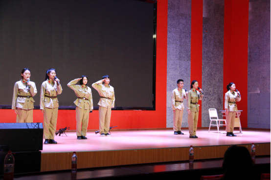 由主持人宣布本次汇报表演正式开始,在《革命年代》声情并茂的朗诵中把同学们的思绪带入战火纷争的年代;舞蹈《活着1937》以生动的舞姿把一群柔弱妇女在面对侵略者丧失人性的屠刀前的绝望、无助表现的淋漓尽致,讲述着对生的渴望,让人不禁热泪盈眶;一个《庄严的宣誓》让同学们坚定了对中国共产党的信仰及增强了想要加入中国共产党的期望……一系列的红色节目让同学们感受到了红色文化的魅力,传承红色精神,为祖国的未来艰苦奋斗着。汇演结束之前,同学们的压轴舞蹈用曼妙的舞姿、讲述了抗击疫情的故事,以舞蹈的形式演绎着抗疫期间中国人民大无畏、无私奉献的精神。