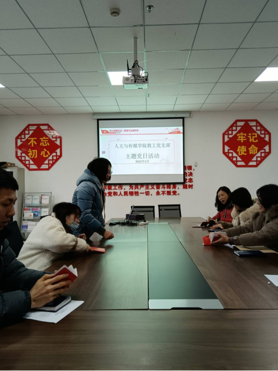 人文与传媒学院教工党支部于2022年1月7日开展“集中收取党费”主题党日活动,会议由教工支部书记何雪凝主持,教工支部党员参加。