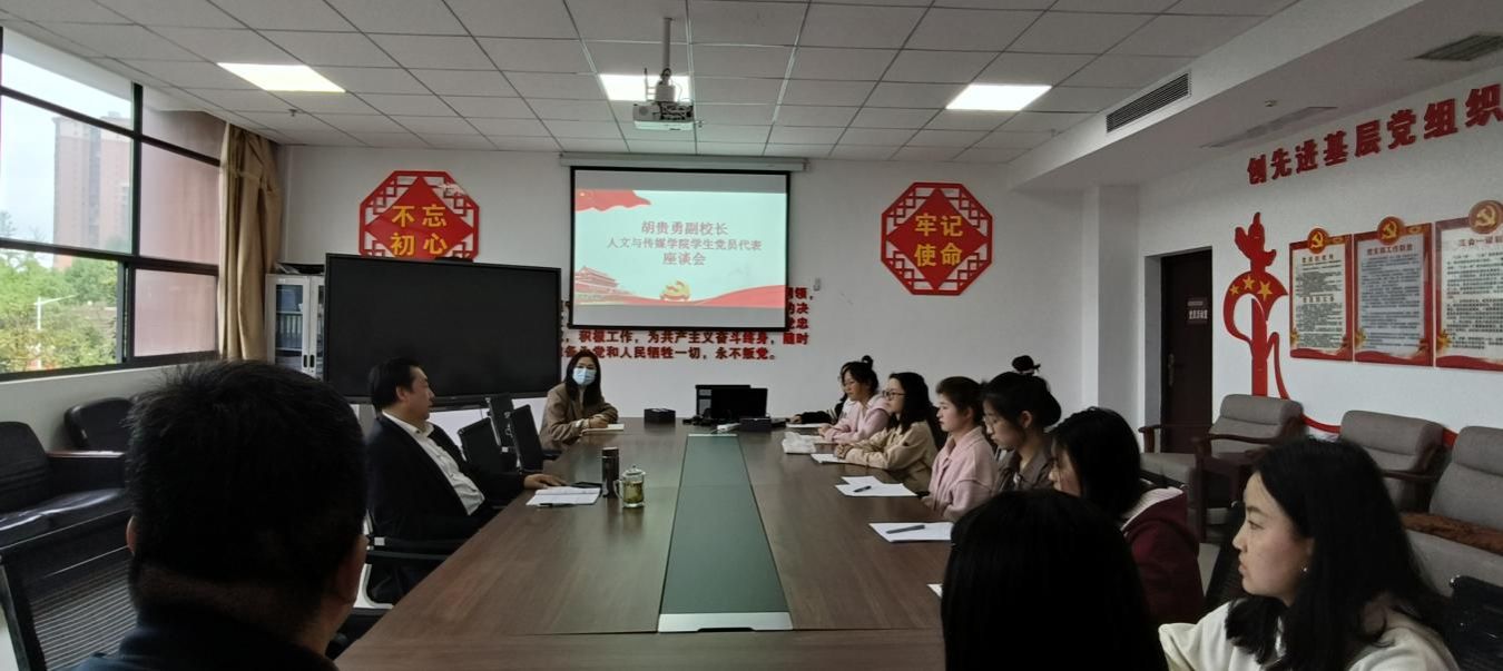 5月10日下午,遵义师范学院副校长胡贵勇莅临人文与传媒学院221会议室,同人文与传媒学院学生第一党支部8名学生党员代表,就学生的未来职业规划与学生党员代表进行座谈。
