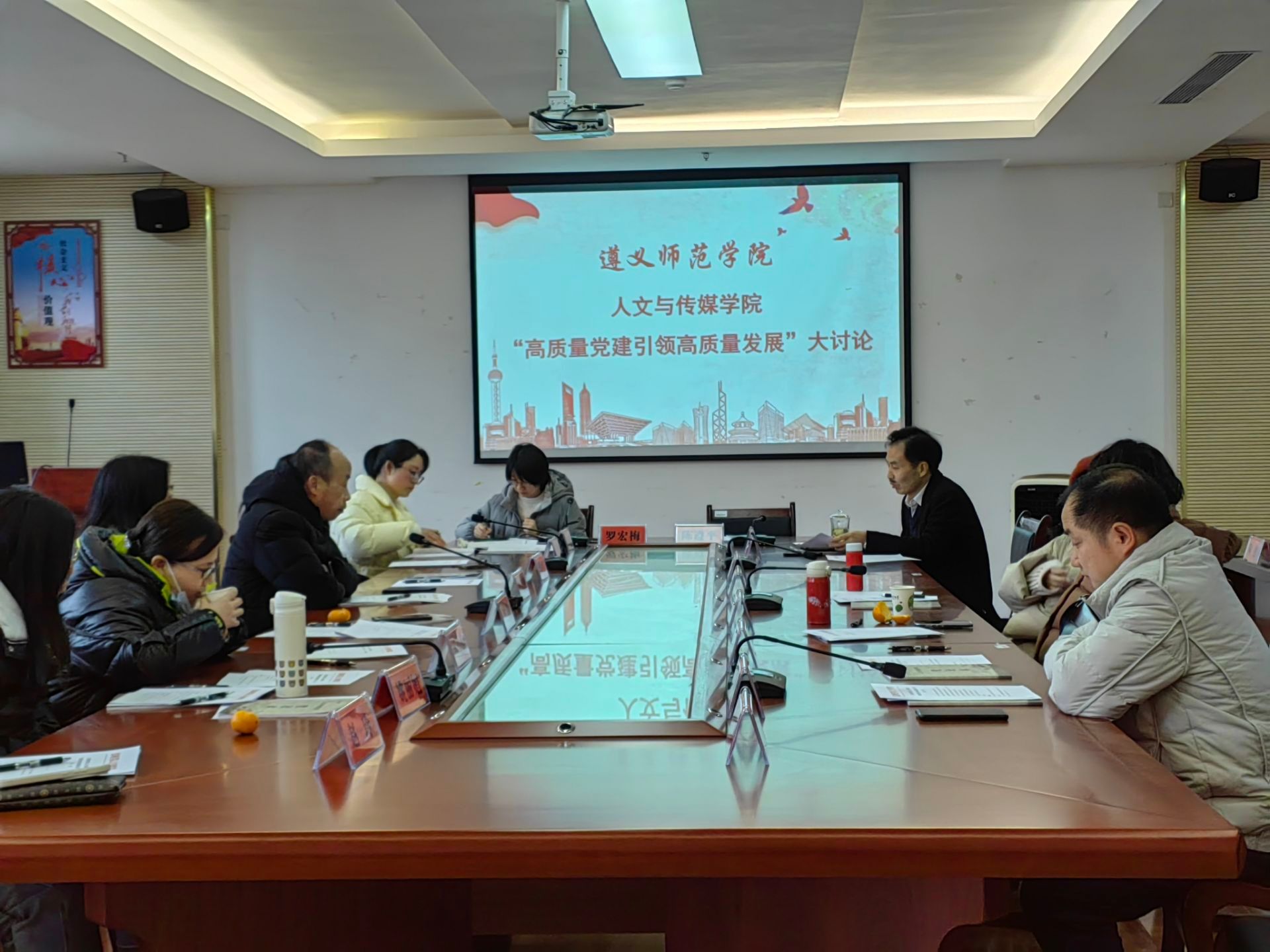 3月1日,人文与传媒学院全体教师,在执文楼215会议室、221会议室,顺利开展了“高质量党建引领高质量发展”专题讨论会。会前,学院制定了详细的研讨会方案,拟定了有针对性的研讨题目。会议由人文与传媒学院院长罗宏梅主持。