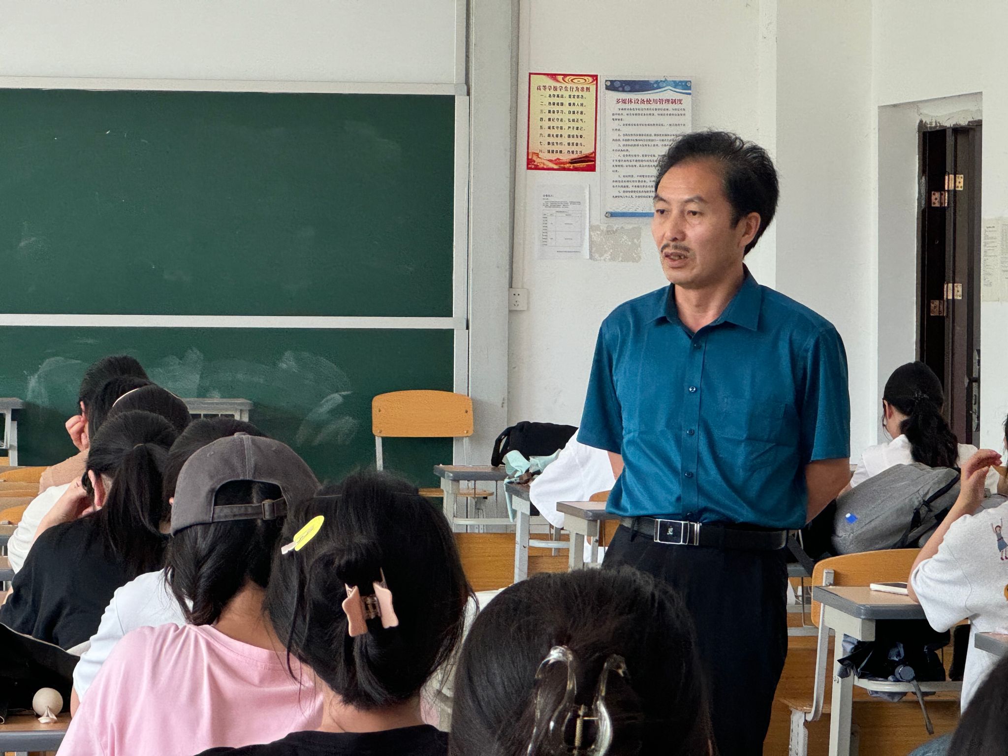 2024年07月12日,在执文楼126教室,人文与传媒学院党总支副书记刘世友向全体暑期留校学生召开学生安全专题会,学生科科长贾婷参加专题会。