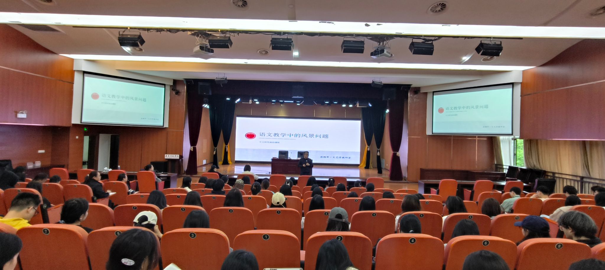 2025年5月10日下午2点30分,华东师范大学汤拥华教授受邀莅临遵义师范学院学术交流中心二楼学术报告厅为学院师生举办讲座。本次讲座由人文与传媒学院院长罗宏梅教授主持,2023级、2024级汉语言文学专业全体同学及部分教师参加。讲座以“风景的多维认知与文学书写”为主题,结合中学语文教材中的经典名篇,通典型案例深入浅出地阐释“风景”理论,带领同学们走进了一个充满哲思与美感的世界。提问环节,我院学子的表现积极踊跃,所提问题获得汤拥华教授的高度认可并作耐心解答,他鼓励同学们多观察、多思考,用文字记录下那些触动自己的瞬间,无论是城市的街巷还是乡村的田野,都可能成为独特的“风景”。